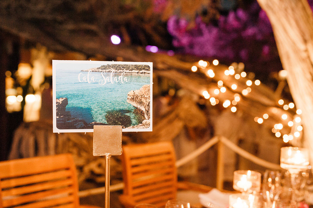 – Diseño y realización de material gráfico: Save the date, invitaciones, menus, seating plan, meseros, señalizaciones de zonas, cesta para el baño.
